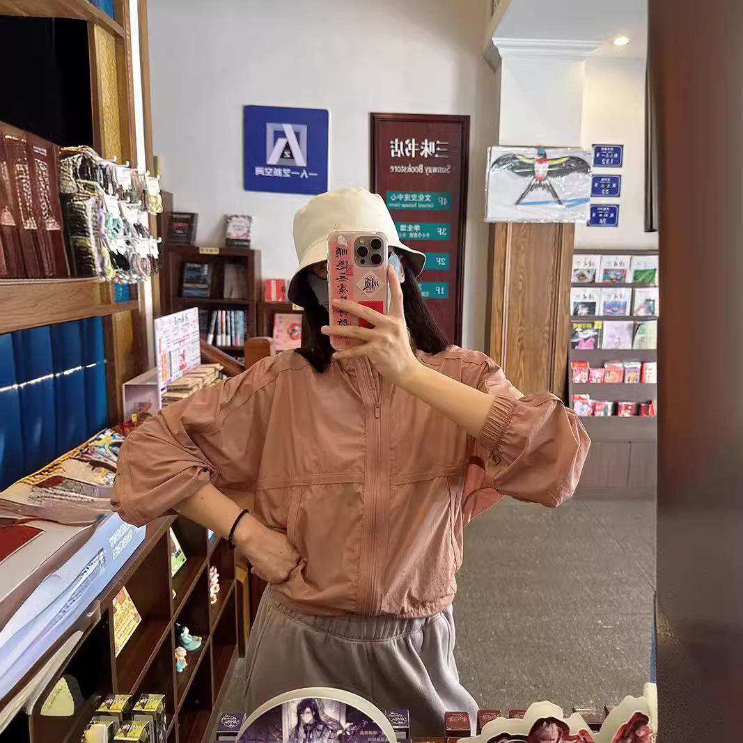 Jimo lulu Same Style Lazy Style Women's High-end Sun Protection Suit with Vertical Collar Blouse Short Loose Sun Protection Early Autumn Jacket