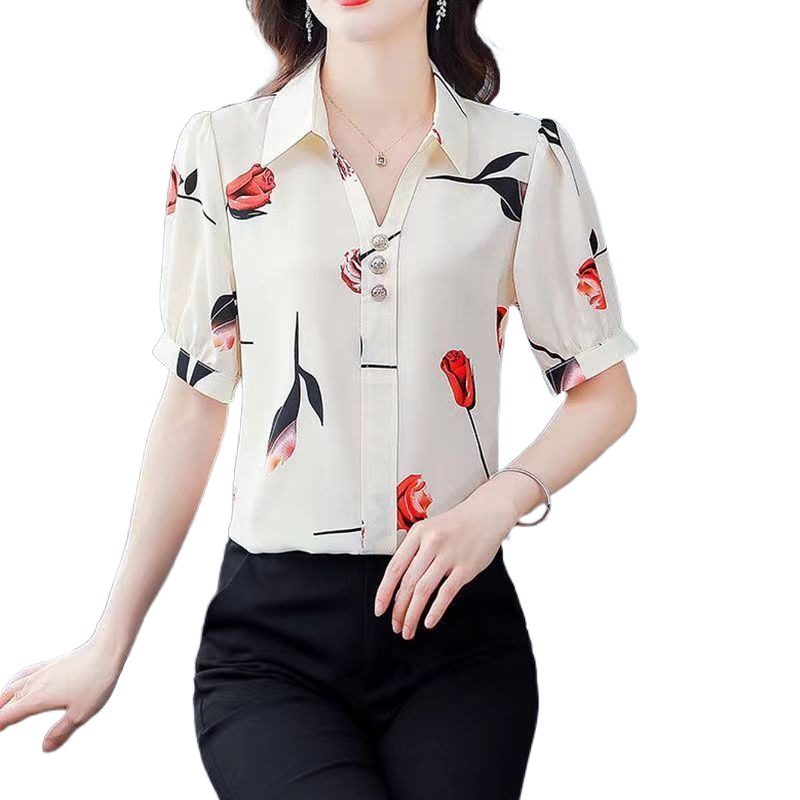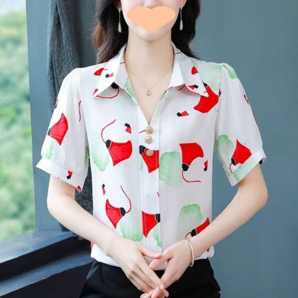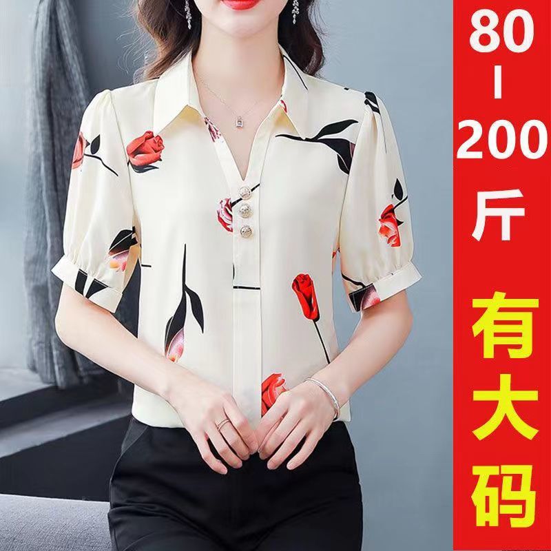 | nameOriginal | Jin Chubby Large Size Women's Clothing for Middle-aged Mother Summer Chiffon Collar Thin Summer New Style Top Shirt |