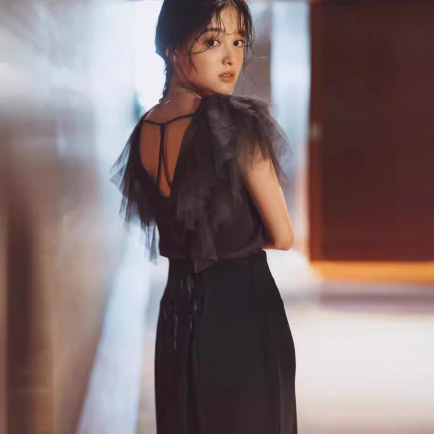 [Jin Yazi] 2023 Summer new mesh small fly sleeve stitching sweater sweater jacket 23150