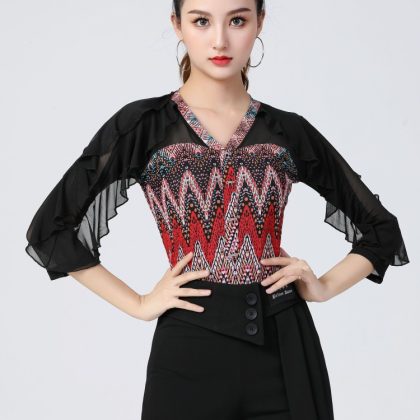 | nameOriginal | Jitterba Dance Suit New Summer Mesh Mid-Sleeve Dance Suit Stretch Slim Fit Flying Sleeve Top Printed Latin Dance Suit |