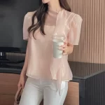 | nameOriginal | JLGL fashionable bow tie short-sleeved see-through chiffon top |