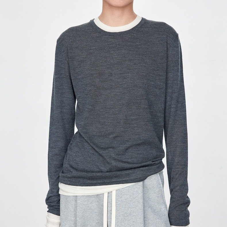 JOC with ~ machine washable wool explosions fake two color matching sunscreen long sleeve air T-shirt wool knitted jacket women