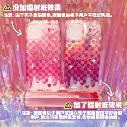 | nameOriginal | JOEJOE original plaid love suitable for 15 Apple 13 mobile phone case iPhone14pro max laser 12 powder Y2K creative 15Pro protective shell glossy mobile phone case niche |