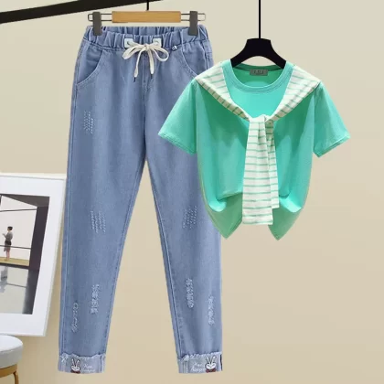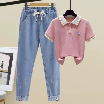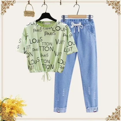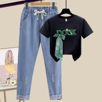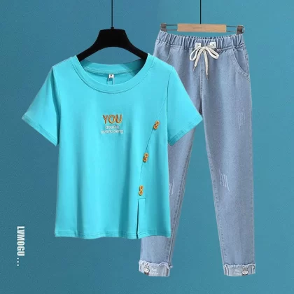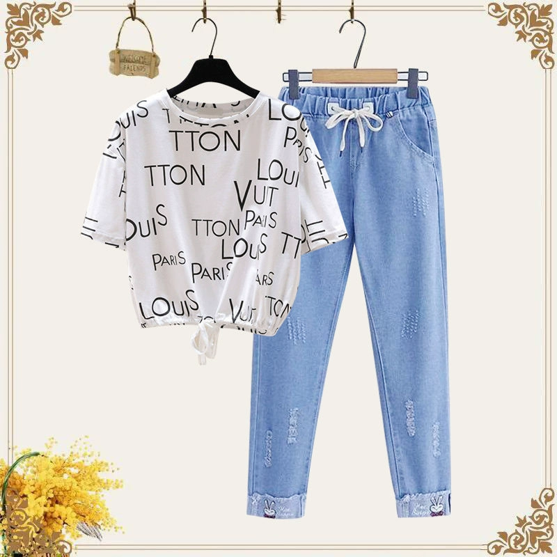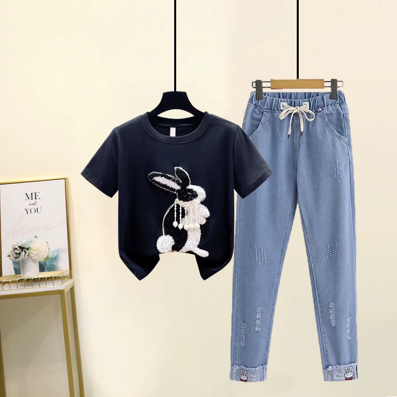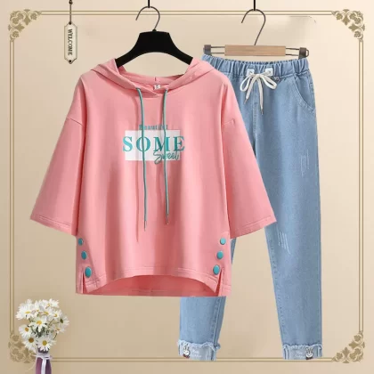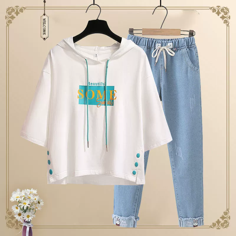 | nameOriginal | Junior and high school students hooded thin loose jeans t-shirt |