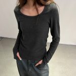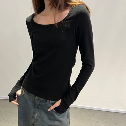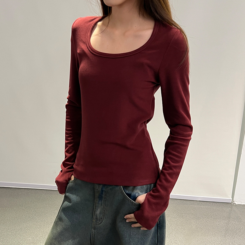 | nameOriginal | JVV SISTER three lines 2023 Winter new long sleeve large round neck slim straight bottoming T-shirt 52161 |