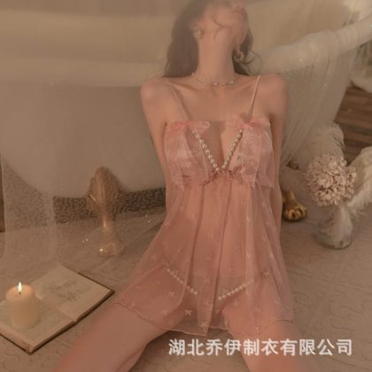 | nameOriginal | JYS736 new sexy pajamas mesh pajamas design sexy nightdress beads bow open underwear |