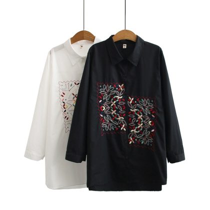 nameOriginal | K91 large size women's autumn new fat sister mm slim loose asymmetric embroidered shirt 9015 |