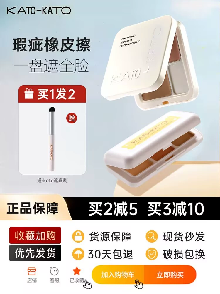 KATO concealer three-color palette concealer liquid for dry skin to cover spots, acne marks, dark circles, brighten tear trough concealer pen for women
