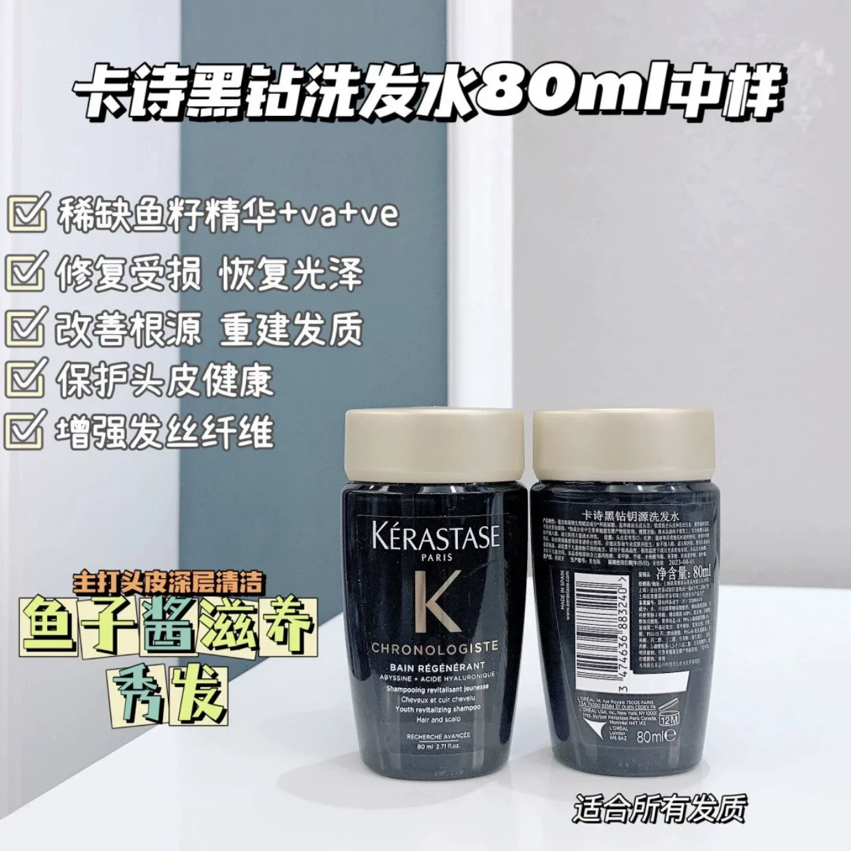 Kérastase Shampoo 250ml Black Diamond Caviar وظيفة مزدوجة/حيوية الزنجبيل/البلطة البلاتينية.