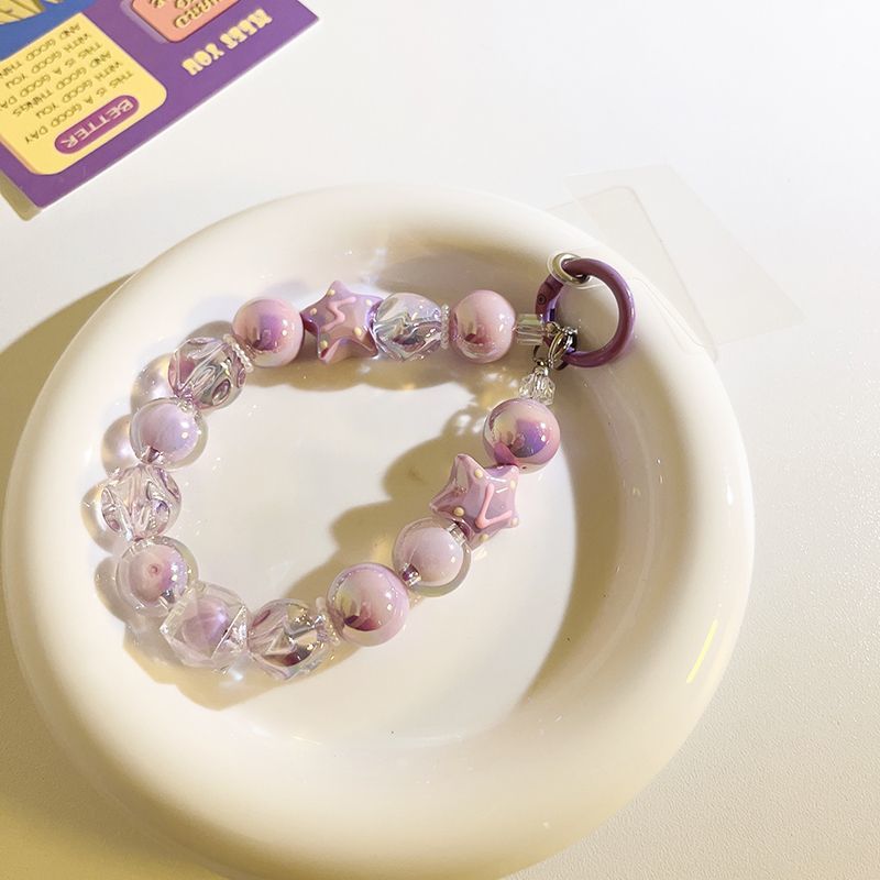 | nameOriginal | Key chain beaded fairy purple five-pointed star chain hand rope mobile phone case earphone case hanging chain mobile phone lanyard key chain |