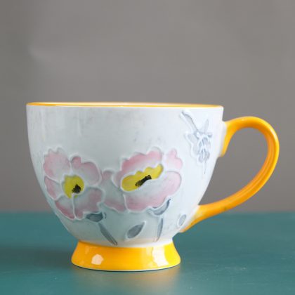 KF15 hand-painted new breakfast cup flower heavy industry Oatmeal cup underglaze color water Cup relief Cup slightly flaw