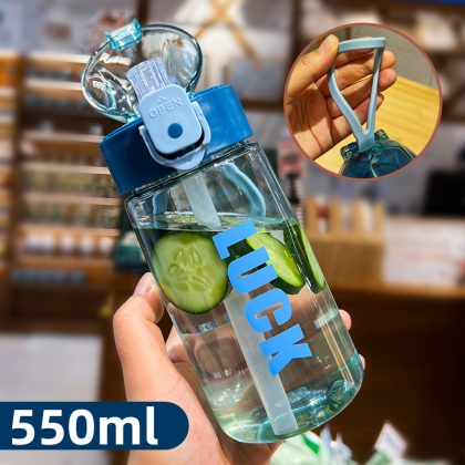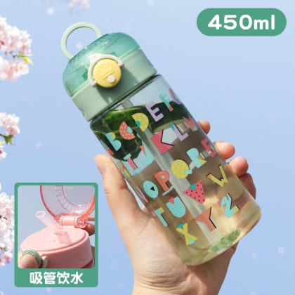 KF15 كوب ماء للأطفال في المدارس الابتدائية للأولاد والبنات غلاية مدرسية محمولة كوب بلاستيكي محمول للنساء الحوامل مع القش