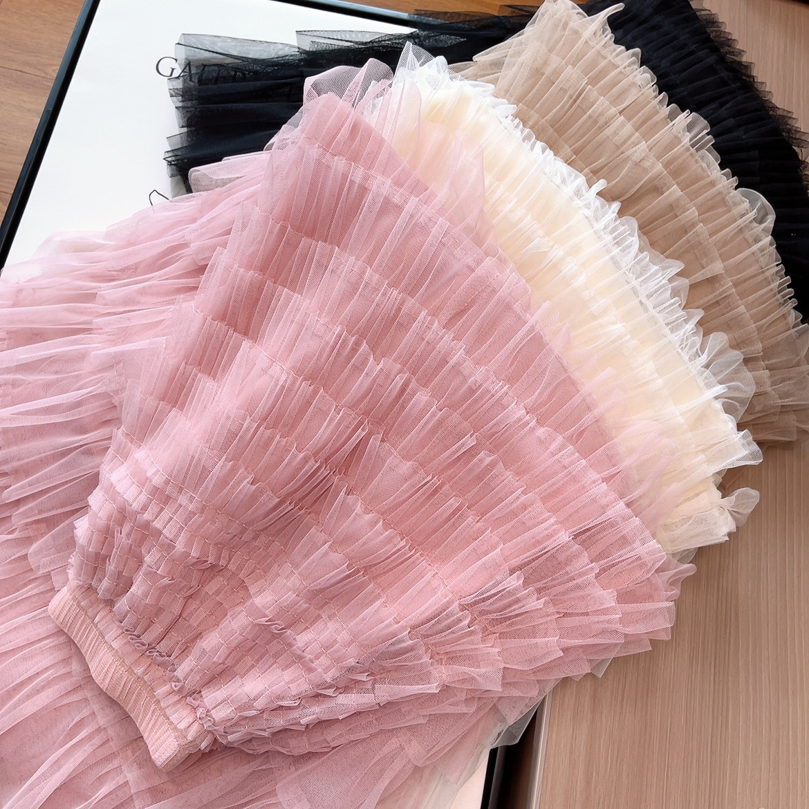 Khaki skirt women's small high-looking mid-length cake pettiskirt goddess multi-layer ruffled mesh skirt