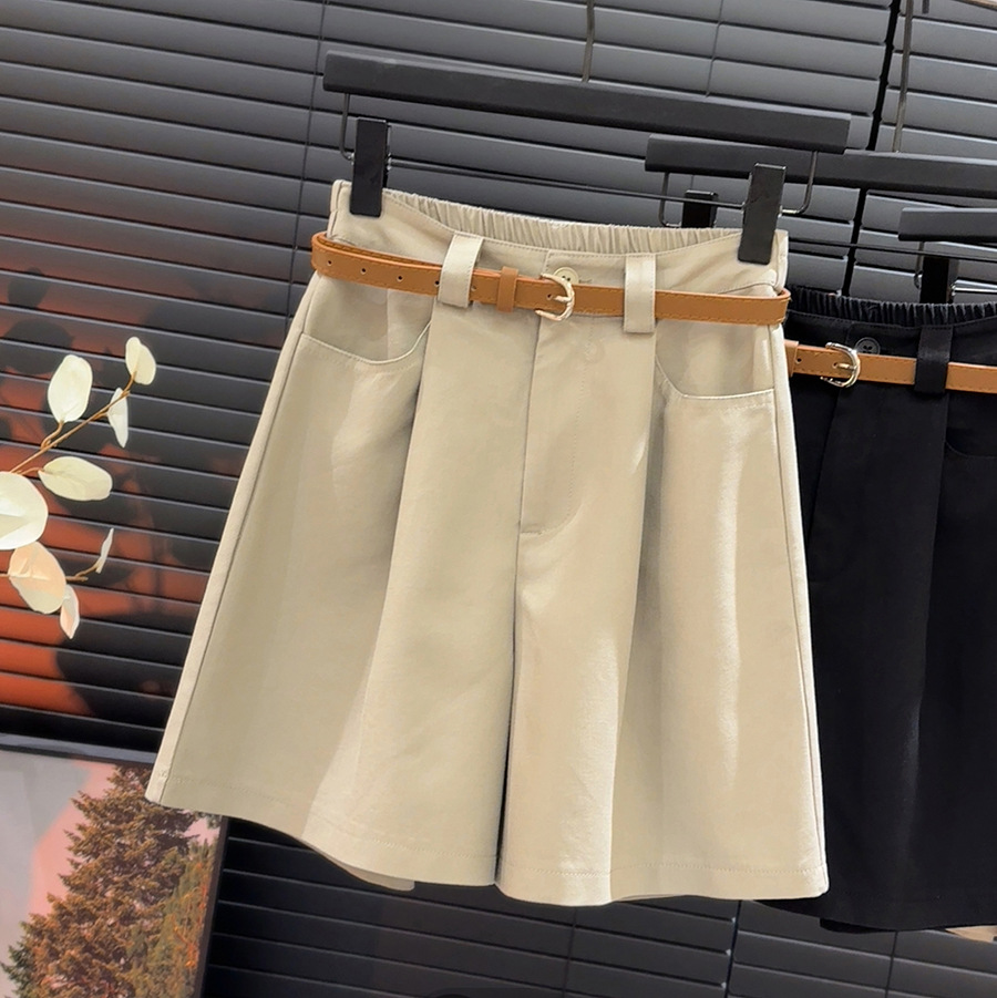 Khaki Workwear Shorts Women's Summer Thin Loose Slim A- line Wide-leg Mid-length Pants High Waist Five-point Cotton and Linen Pants