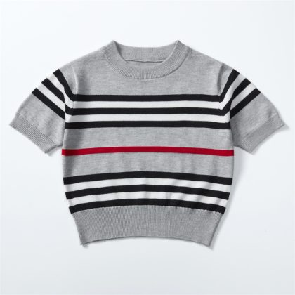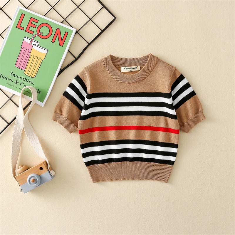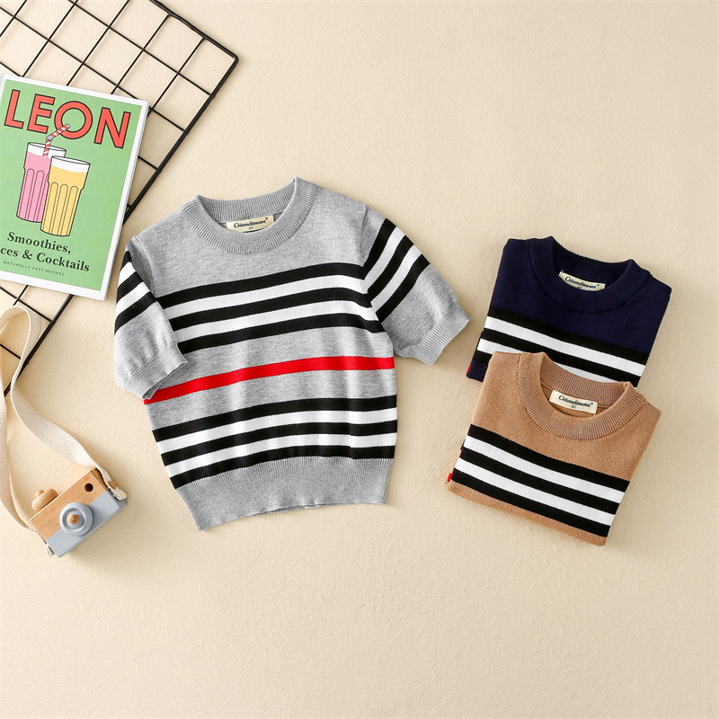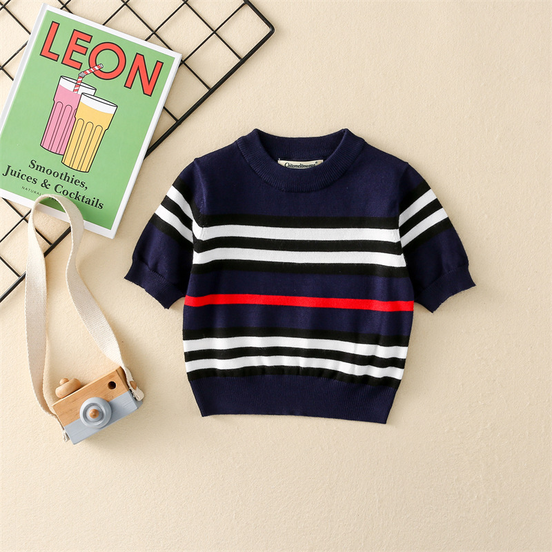 nameOriginal | Kid Knitwear Spring New Striped Short-sleeved Pullover Fashionable All-match British-style Base Shirt |