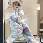 كرتون كرتون مرجان الصوف بيجاماس نساء شتاء 2024 جديد زائد مخملية سميكة الفخمة ملابس منزلية من قطعة واحدة الشتاء