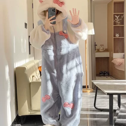 كرتون كرتون مرجان الصوف بيجاماس نساء شتاء 2024 جديد زائد مخملية سميكة الفخمة ملابس منزلية من قطعة واحدة الشتاء