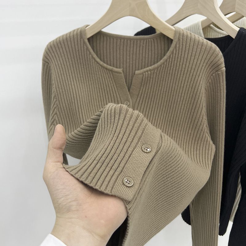 | nameOriginal | Knitted bottoming shirt for women Spring and Autumn thin cardigan sweater coat New Year outer wear retro inner top for women |