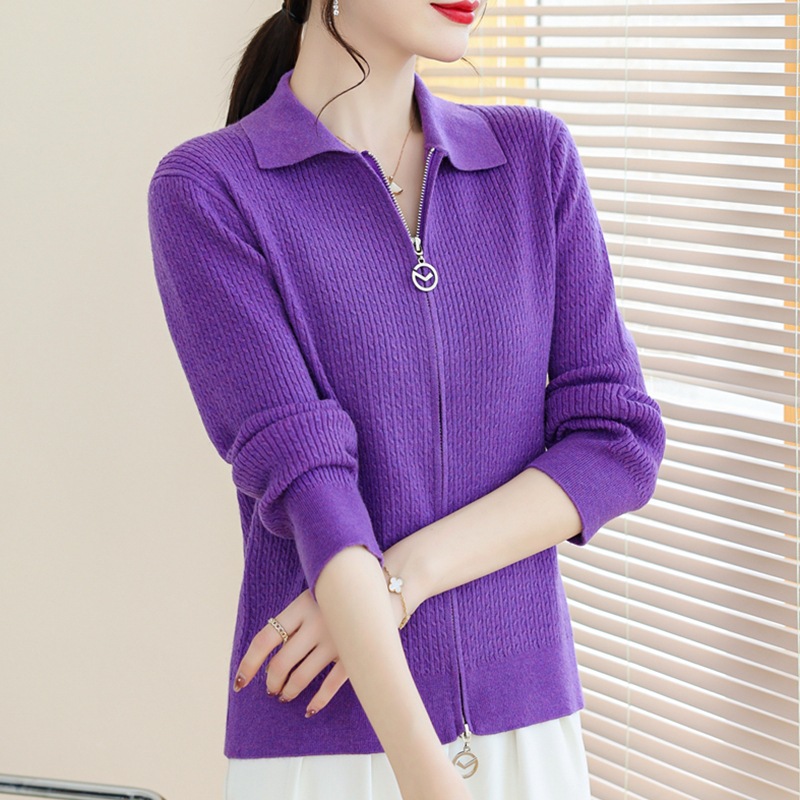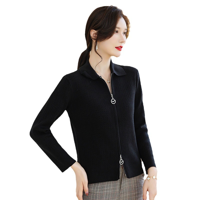 | nameOriginal | Knitted Cardigan Women's Solid Color Zipper New Spring and Autumn Clothes Middle-aged Mother Small All-match Sweater Square Collar Jacket |
