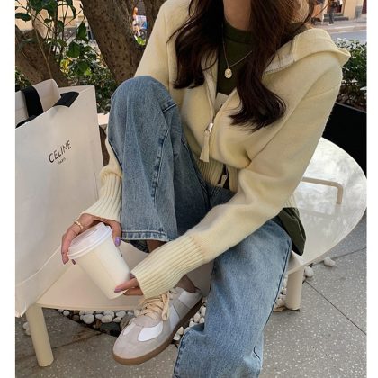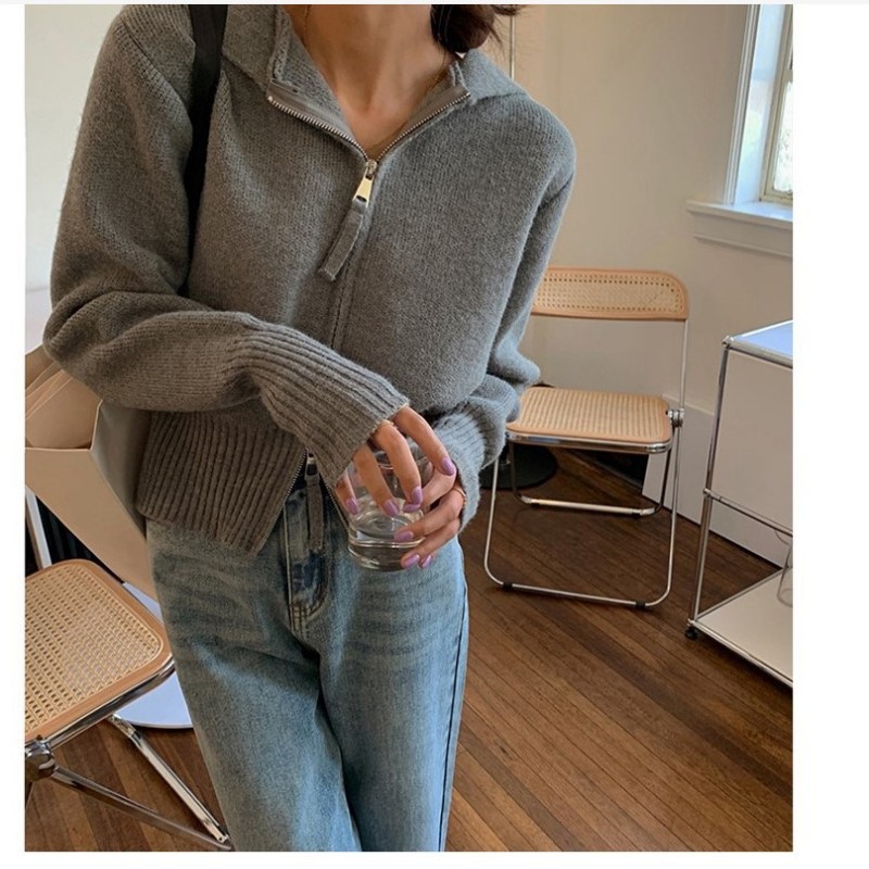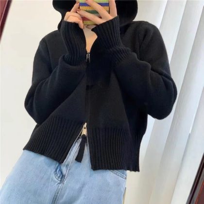 | nameOriginal | Knitted Cardigan Women's Spring and Autumn 2023 New Slim Hooded Double Zipper Short Sweater Solid Color Elegant Coat Trendy |