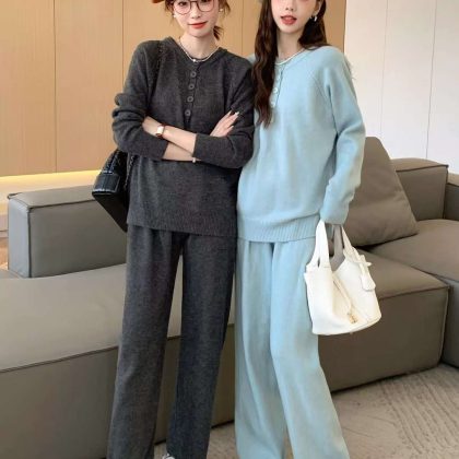 | nameOriginal | Knitted suit Women's 2024 Autumn and Winter New Elegant Goddess Fan Western Style Age-reducing Sweater Wide-leg Pants Two-piece Set Trendy |