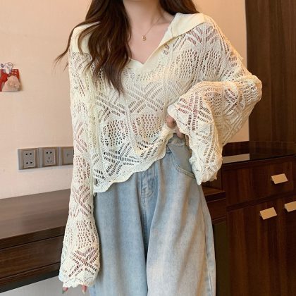 | nameOriginal | Knitted sweater women's hollow design sense blouse long sleeve 2024 spring and summer new horn sleeve hot girl temperament cross-border explosions |