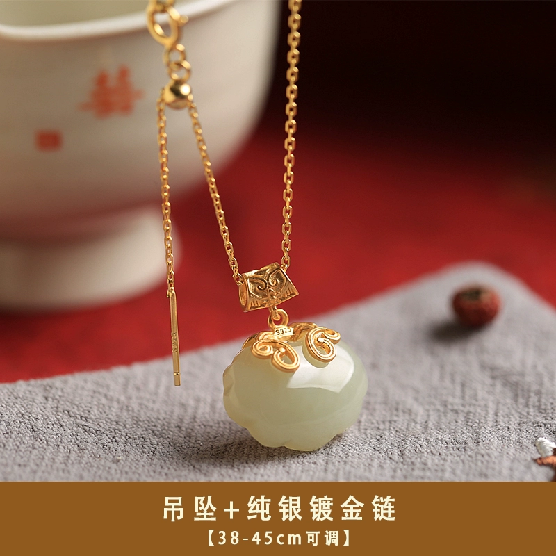| nameOriginal | Koi sterling silver Hetian jade girl Ruyi Xiangyun safe lock |