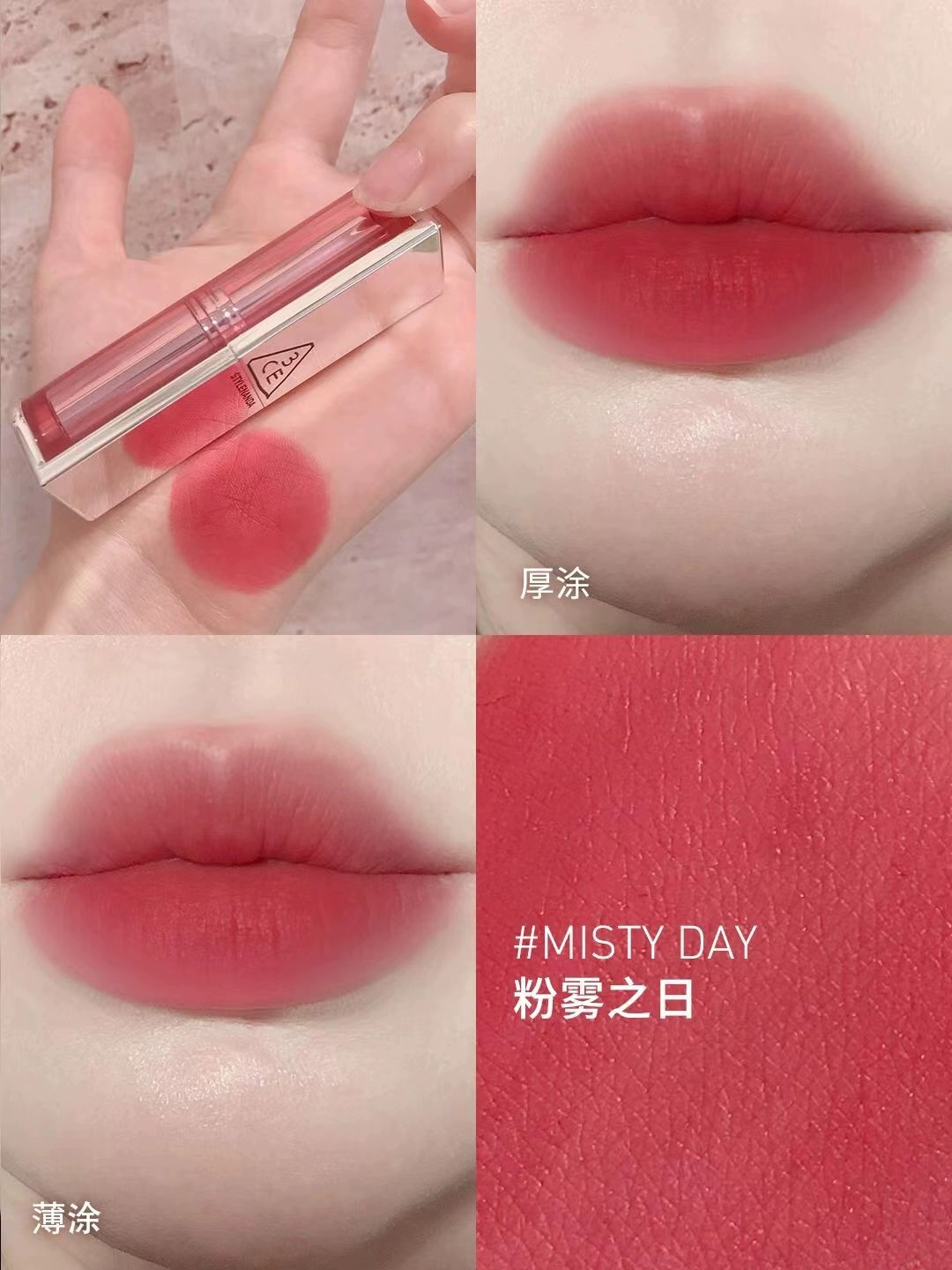 | nameOriginal | Korea 3CE transparent tube amber matte lipstick square tube matte dirty orange 220 earthy pumpkin color #116 whitening |