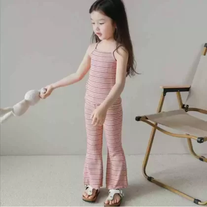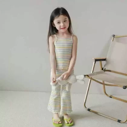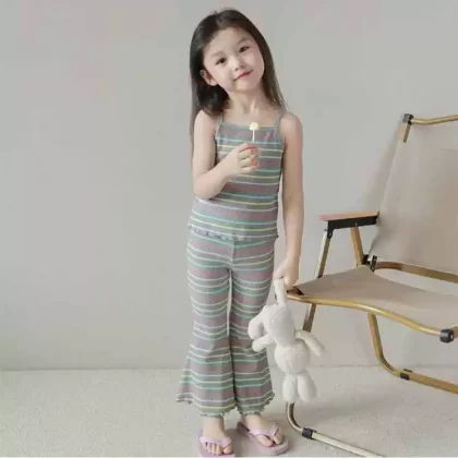 | nameOriginal | Korean children's clothing girls summer fashionable Western suit thin children's camisole striped bell pants two-piece set |
