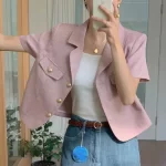 | nameOriginal | Korean Dongdaemun chic niche French retro temperament suit collar double pocket single-breasted design short jacket |