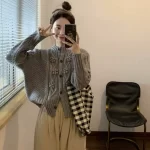 | nameOriginal | Korean Heavy Industry Crochet Stand Collar Gray Sweater Coat Women's Winter Loose Thickened Retro Knitted Cardigan Short Top |