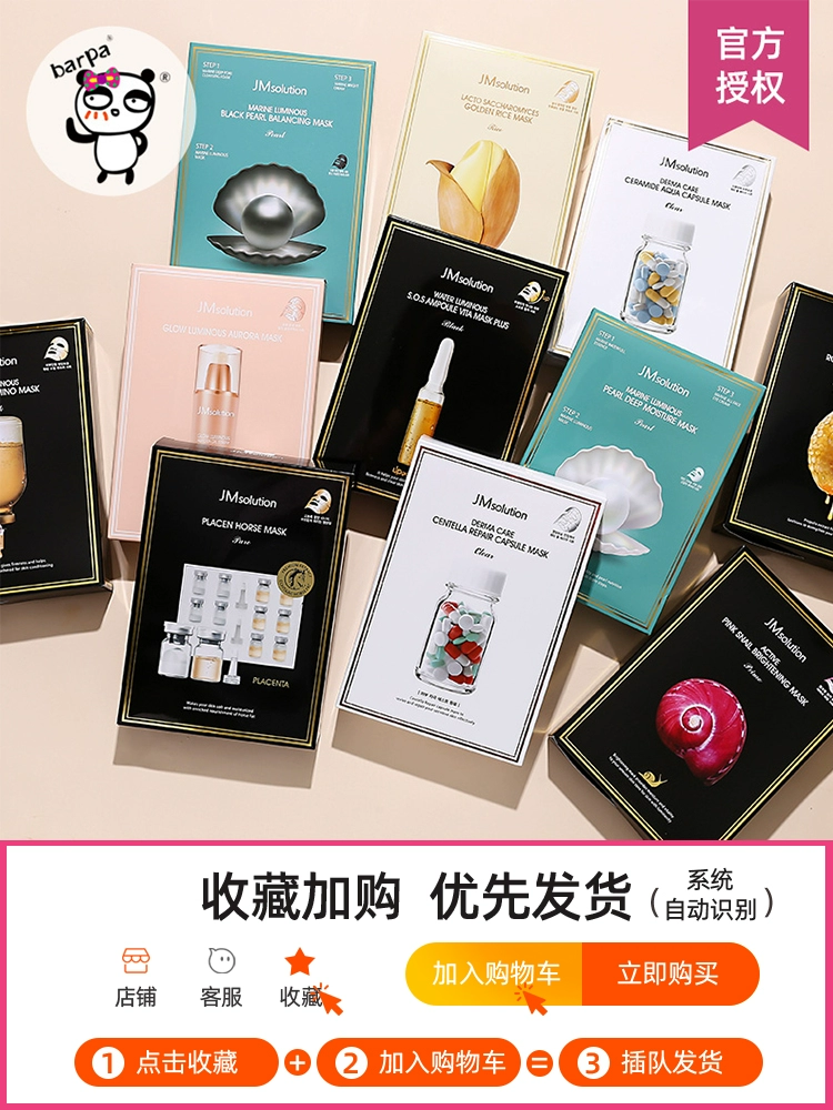 Korean JM facial mask for women, hydrating, moisturizing, soothing, first aid, bird's nest, pearl, silk, jellyfish, honey mask, authentic men's mask