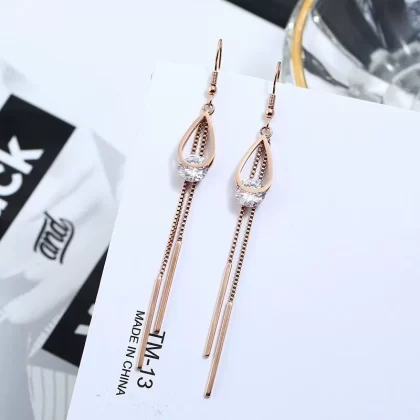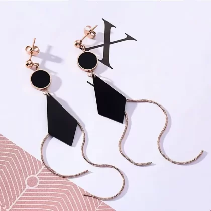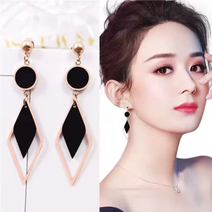 | nameOriginal | Korean new temperament geometric tassel earrings long rhombus earrings women's trendy personality titanium steel super fairy ear jewelry |