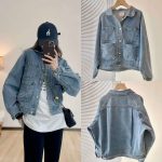 سترة من قماش الدنيم فضفاضة متعددة الجيوب بياقة دمية عتيقة من شركة vo * avaca الكورية
