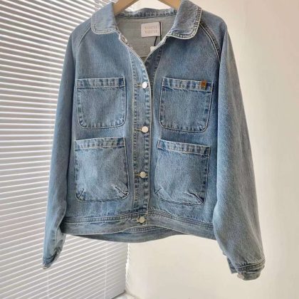 سترة من قماش الدنيم فضفاضة متعددة الجيوب بياقة دمية عتيقة من شركة vo * avaca الكورية
