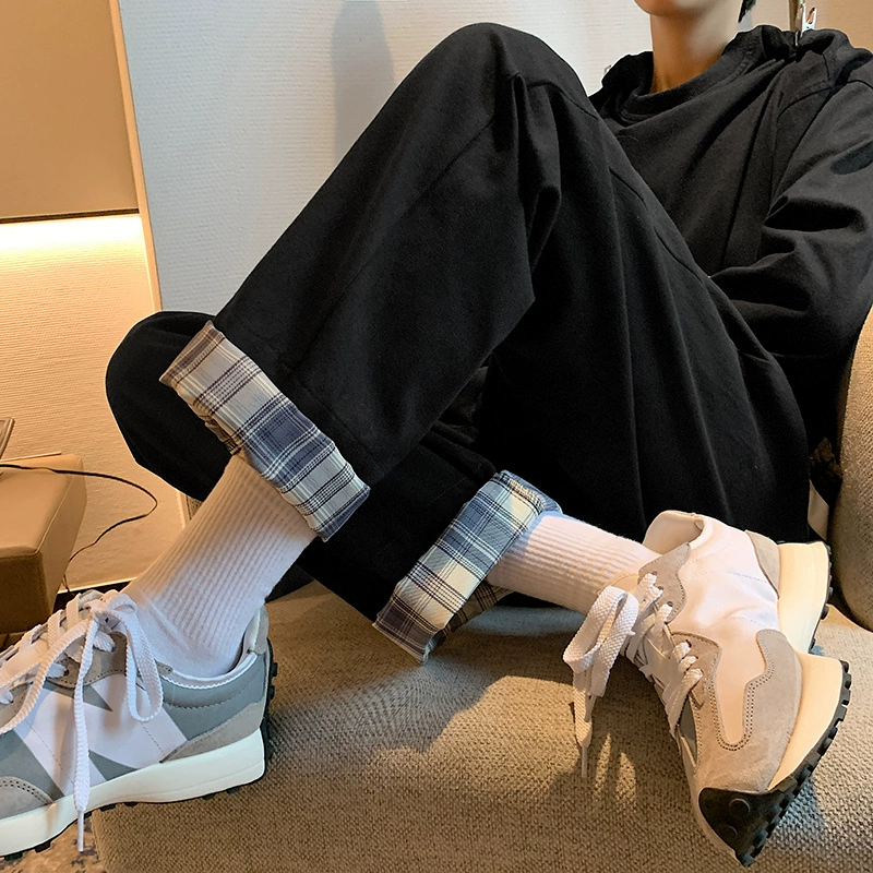 أمر كوريا الجنوبية! أربعة جوانب! ضوء ، سريع ، طبل ، خصر فضفاض ، أنبوب مستقيم ألوان صلبة سراويل غير رسمية ، تسع بنطلون أنثى