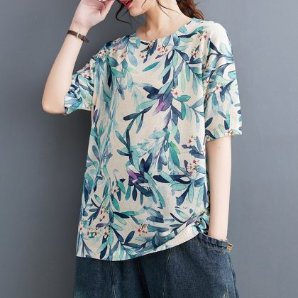 | nameOriginal | Korean Style 2023 Summer New Artistic Retro Printed Loose Casual Large Size Short Sleeve T-shirt for Chubby Girls |
