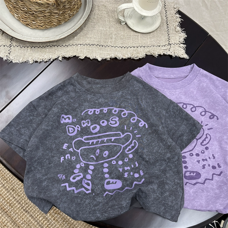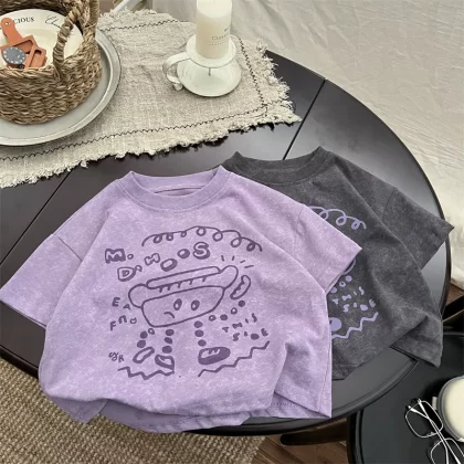 تي شيرت كاجوال للأطفال برقبة دائرية على الطراز الكوري وأكمام قصيرة