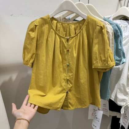 | nameOriginal | Korean Style Artistic Color Button Cotton Linen Round Neck Shirt Women's 2024 Summer New Loose Casual Pleated Elegant Top |