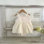Korean style baby girl summer embroidered lace sling