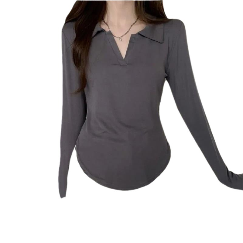 Korean Style Base Shirt Women's Spring and Autumn New Slim-fit Slimming Lapel Solid Color All-match Collar Long-sleeved Early Autumn Top