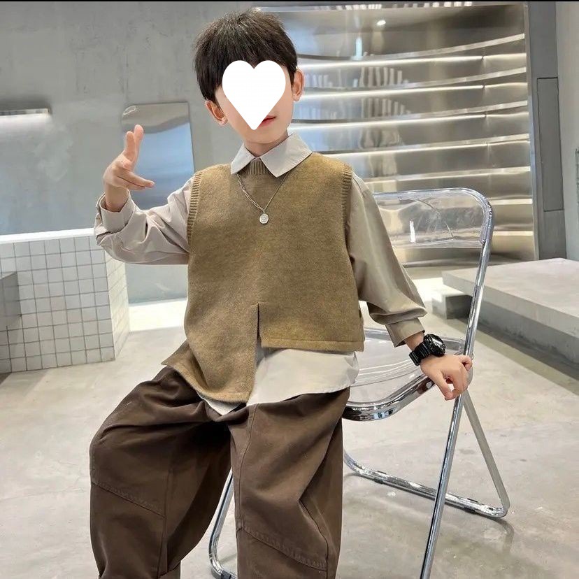 Korean-style Boys' Spring and Autumn Shirt Sweater Knitted Sweater Vest Three-piece Set Children's suit
