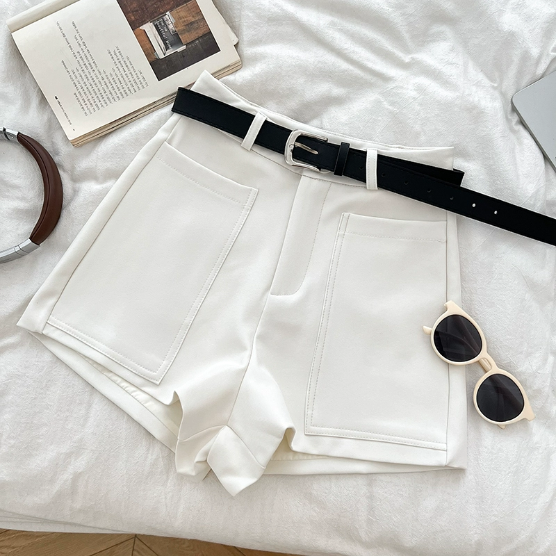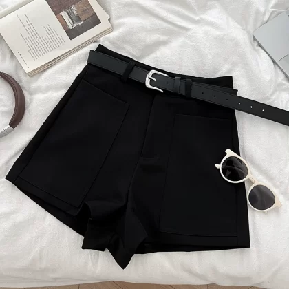 بنطال كاجوال على الطراز الكوري بجيب كبير وخصر عالي وساق واسعة مع حزام