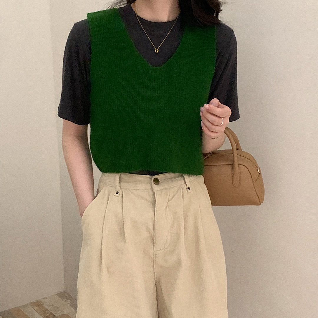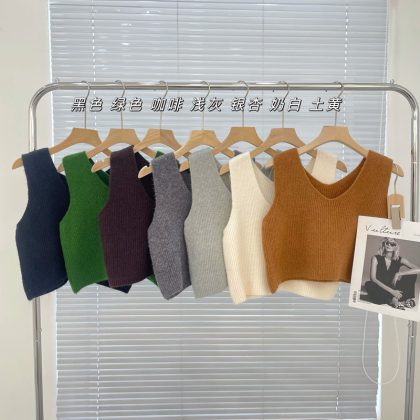 | nameOriginal | Korean Style Casual Short Stacked Sleeveless Sweater Vest Women's 2024 Autumn and Winter New Knitted Solid Color Vest Waistcoat |