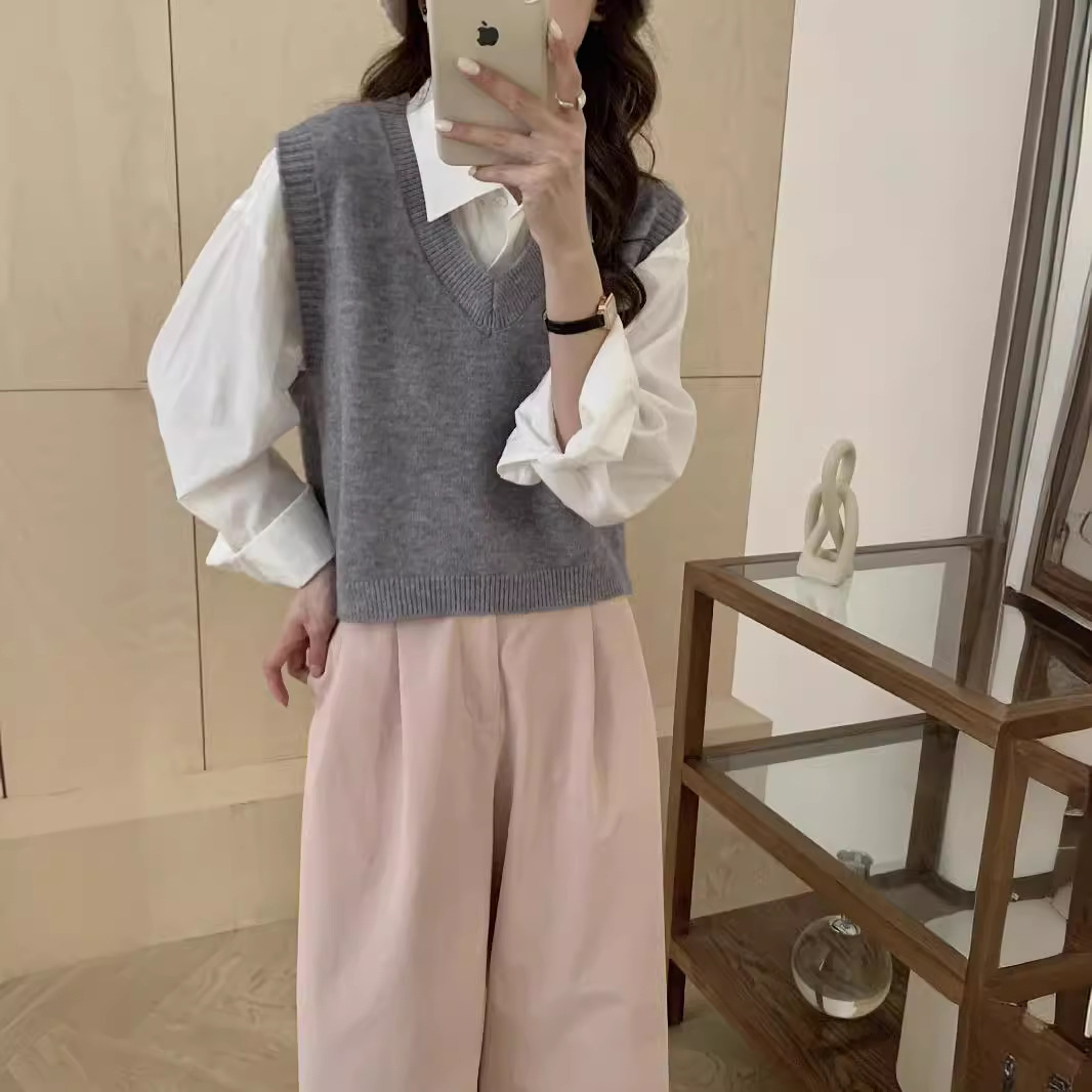 | nameOriginal | Korean Style Casual V-Neck Stacked Loose Knitted Vest for Petite Women's Short Simple Western Style Knitted Vest for Women |