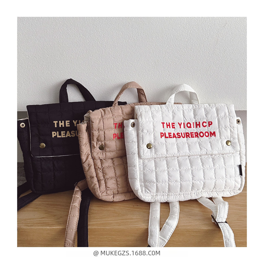 Korean style children's backpack personalized simple retro cotton-filled flip bag trendy children's baby Street shooting kindergarten schoolbag