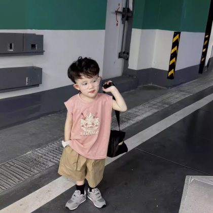 Korean Style Children's Wear Boys Sleeveless T-Shirt 2024 New Children's Vest Summer Thin Top for Boys and Babies