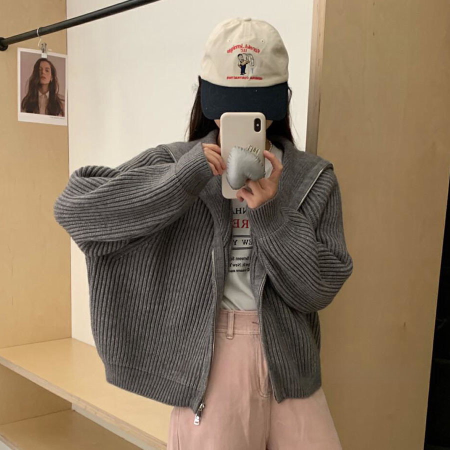 | nameOriginal | Korean Style College Style Navy Collar Knitted Cardigan Women's 2024 Autumn and Winter New Simple Loose Double Zipper Sweater Jacket |