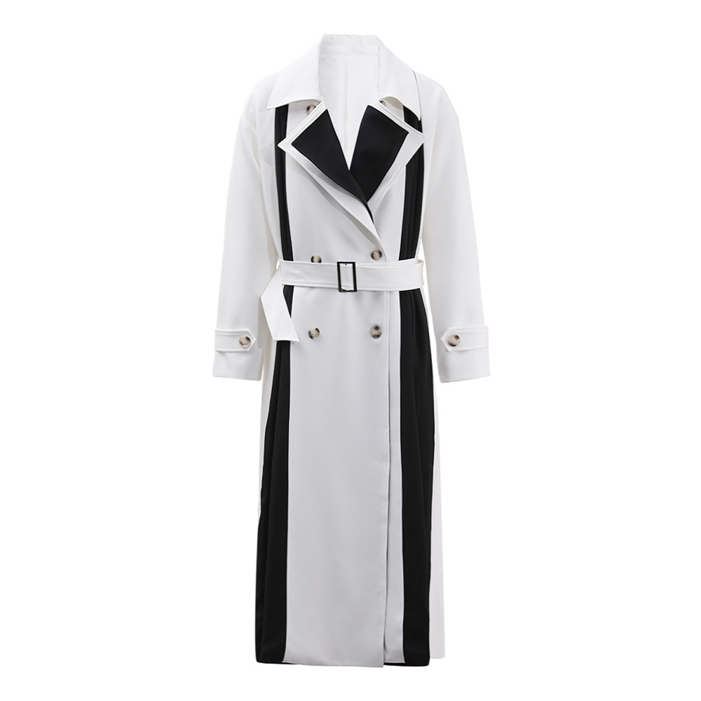 Korean style contrast color stitching long windbreaker women's autumn new double-breasted slit design feeling lapel silhouette coat
