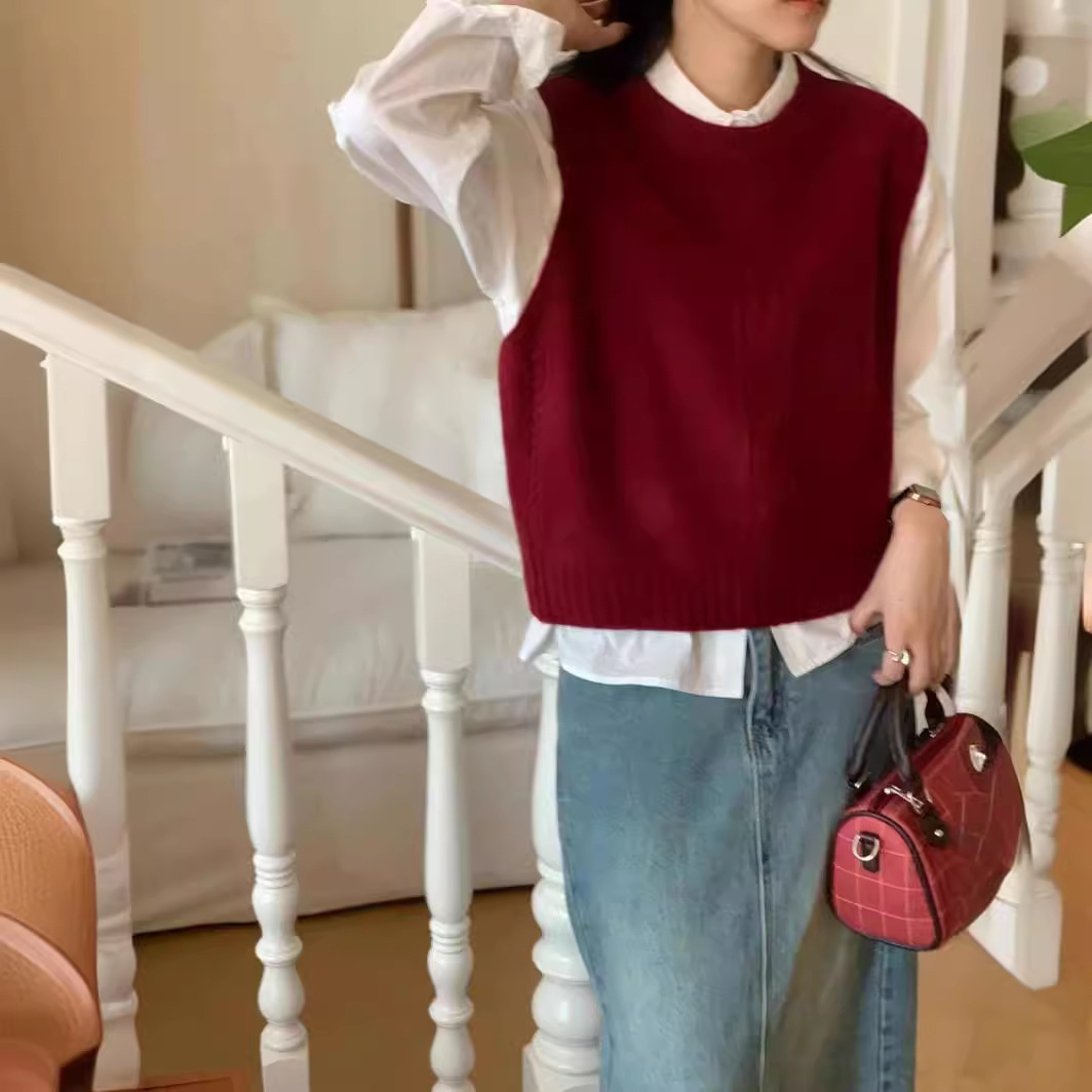 | nameOriginal | Korean Style Crewneck Simple Knitted Laid-back Style Solid Color 100 Pure Wool Stacked Vest Outer Waistcoat Versatile |